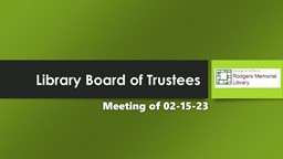 - Library Board of Trustees Meeting of 02-15-23