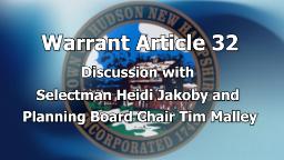 - Town Warrant Article 32 Discussion with Tim Malley