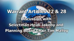 - Town Warrant Articles 22 & 28 Discussion with Tim Malley