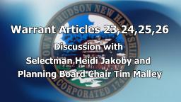 - Town Warrant Articles 23,24,25,26 Discussion with Tim Malley