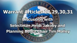 - Town Warrant Articles 27,29,30,31 Discussion with Tim Malley