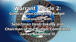 - Town Warrant Article 2 Discussion with James Lawrence lll