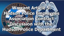 - Town Warrant Article 5 Discussion w/ the Hudson Police Department